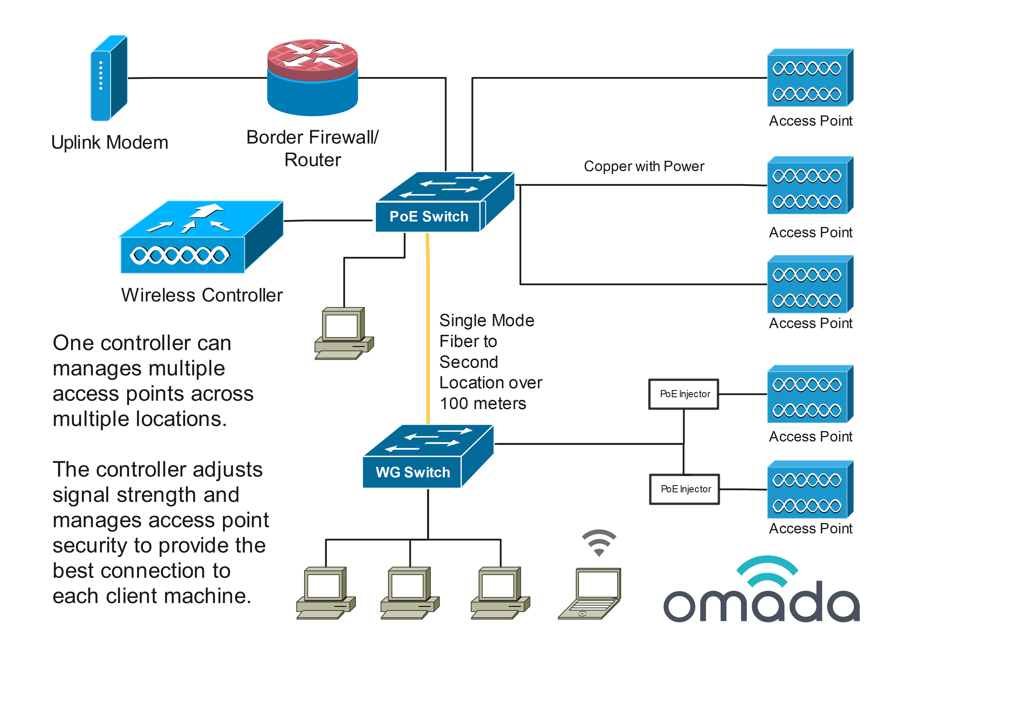In addition to debugging and tuning Wifi networks we offer OMADA lightweight access point solutions. A managed LWapp solution offers significant advantages over unmanaged WiFi, even in residential installations: